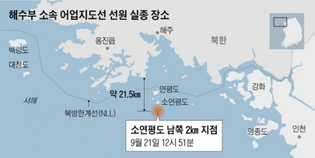 이 씨의 실종은 21일(월) 오전 11시30분에 최초 인지됐다. 청와대는 지난 22일(화) 오후 6시 36분에 북측이 실종자를 해상에서 발견했다는 첩보를 서면으로 보고 받았다.