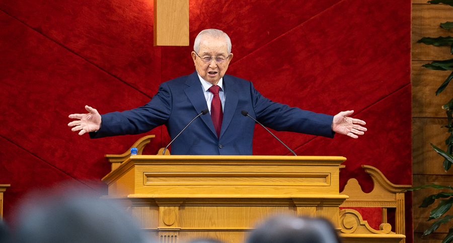 시카고예동침례교회 강단에서 설교하는 김장환 목사 <사진: 박원정>
