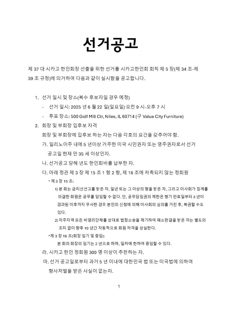 뉴스콘텐츠 제37대시카고한인회장선거 공고 admin May 13, 2025 Tags: 시카고한인회장선거 Post navigation Previous: 시카고한인문화원, ‘250만 달러’ 어린이 박물관 프로그램 공동 개발Next: 시카고한인문화원의 현대 한국도자기전 Leave a ReplyYour email address will not be published. Required fields are marked *Comment * Name Email Website