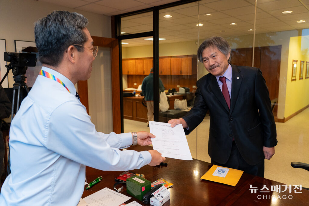 서류를 수령한 후보 캠프는 허재은 현 시카고한인회 부회장과 정강민 전 시카고체육회장 측이다.