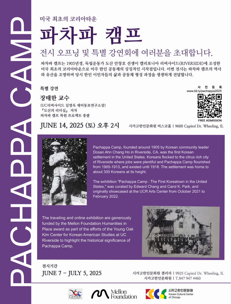 오는 6월, 시카고한인문화원은 뜻깊은 전시로 한인 지역사회의 역사적 자부심을 일깨운다. 문화원은 6월 7일부터 7월 5일까지 갤러리에서 특별 전시 ‘파차파 캠프: 미국 최초의 코리아타운(Pachappa Camp: The First Koreatown in the United States)’을 선보인다.