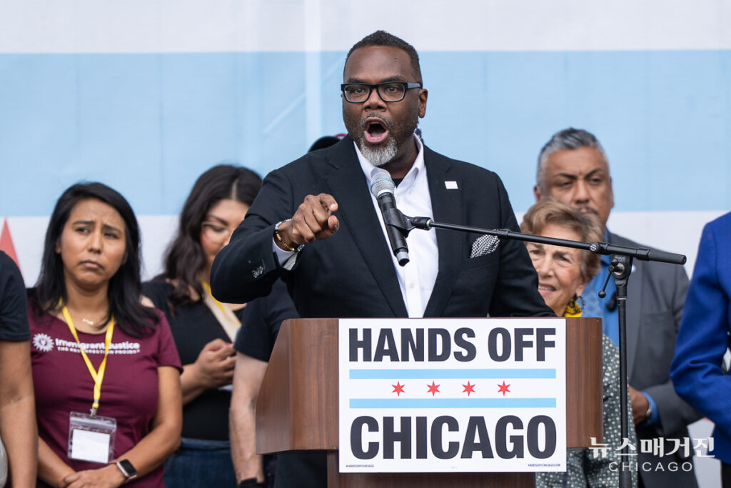 집회에 참석한 브랜든 존슨 시카고시장은 “여러분, 민주주의를 지킬 준비가 되었습니까? 파시즘과 맞서 싸울 준비가 되었습니까? 권위주의를 영원히 끝장낼 준비가 되었습니까? 전 세계가 여러분의 목소리를 들을 수 있게 외치십시오. No Kings!(왕은 없다!)”고 강조했다.