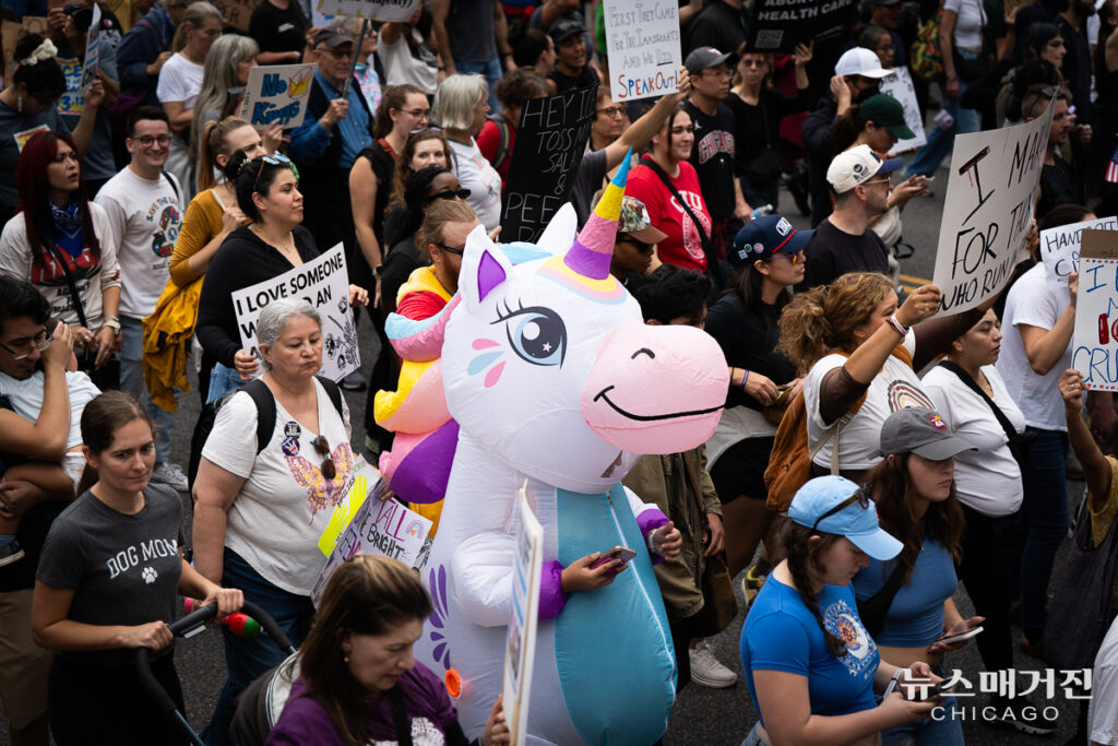18일 정오 시카고 그랜트파크 버틀러필드에서 시작된 집회는 미시간애비뉴와 웨커드라이브, 클라크길 등 도심 주요 거리를 행진한 뒤 오후 4시경 출발지로 돌아왔다. 시카고 경찰은 이날 시위와 관련해 체포된 사람은 없다고 밝혔다.