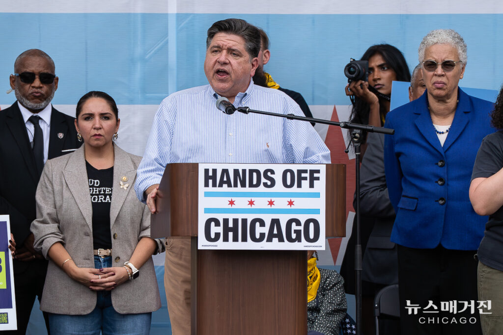 JB 프리츠커 일리노이 주지사는 “오늘 우리는 미국의 건국 이래 지켜온 원칙을 수호하기 위해 모였습니다. 그 어떤 형태의 폭정이라도 양심 있는 사람들이 맞서야 한다는 믿음을 바로 이곳 시카고에서 우리가 보여줄 때입니다. 우리는 결코 굴복하지 않을 것입니다.”라고 말했다.