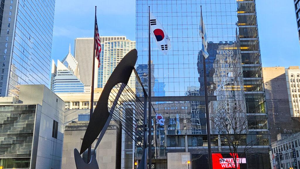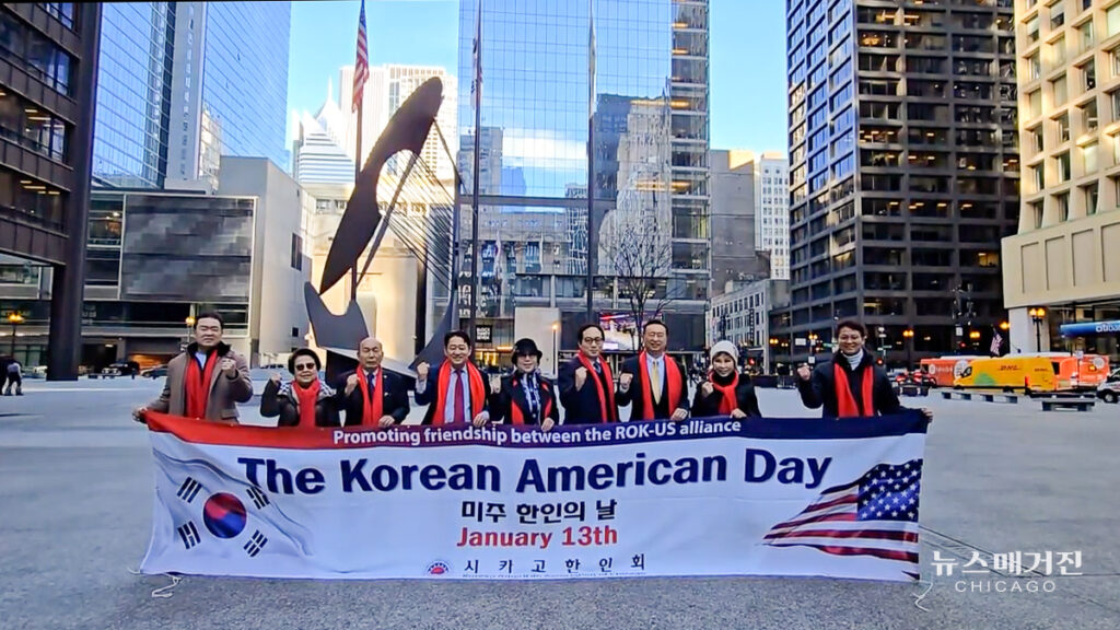 오늘(1월 13일) ‘미주 한인의 날’을 맞아 시카고 다운타운 소재 데일리 플라자에 태극기가 게양됐다.