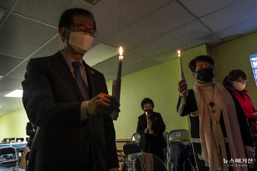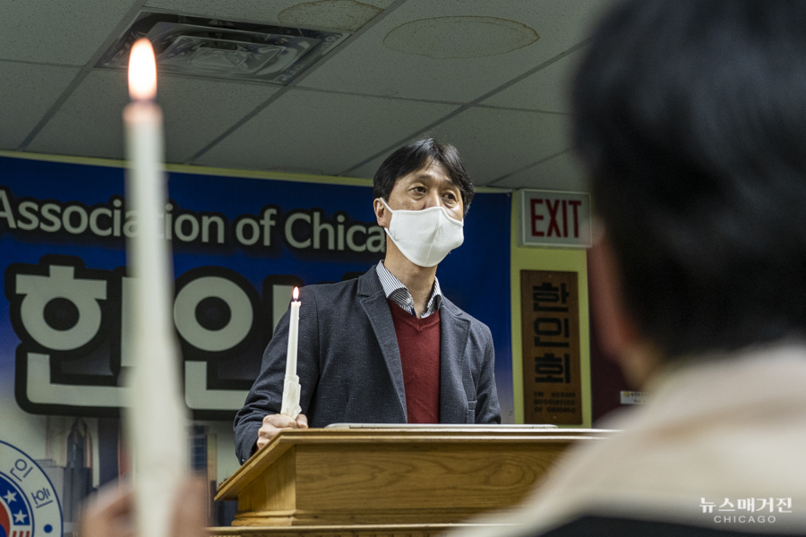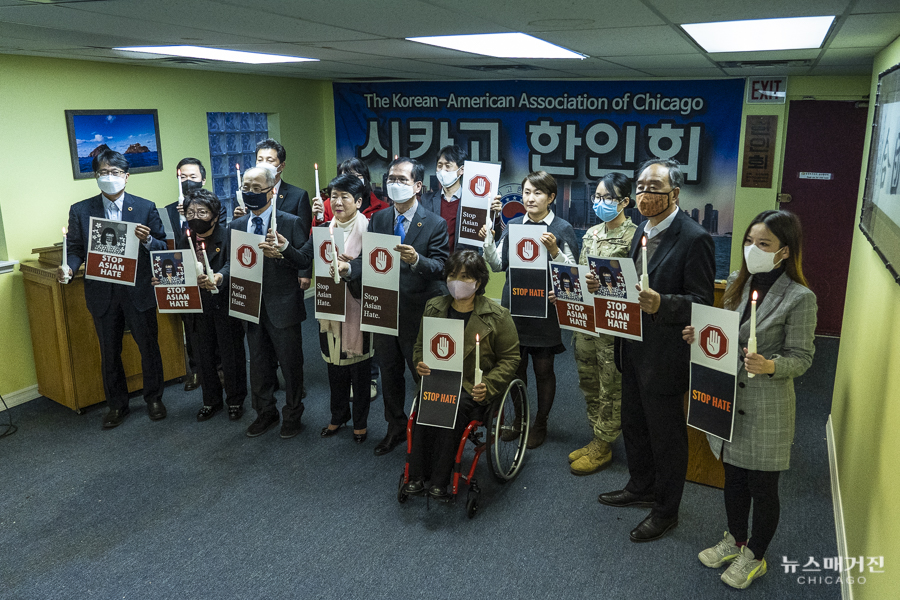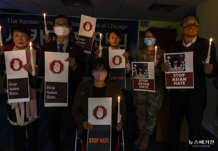 아시안 혐오범죄 근절을 위한 촛불집회가 오늘 시카고한인회관에서 열렸다.