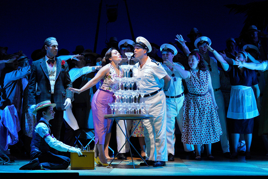시카코 리릭오페라 데뷔를 장식한 연출가 다니엘 슬레이터는 19세기 배경의 원작을 20세기 중반으로 시대를 옮겨 풀어내며 관객과의 효과적인 교감을 유도했다. 다만 총 2막이 오로지 아디나 호텔 배경에서만 전개돼 비용을 절감한 무대세트라는 인상을 풍겼다.