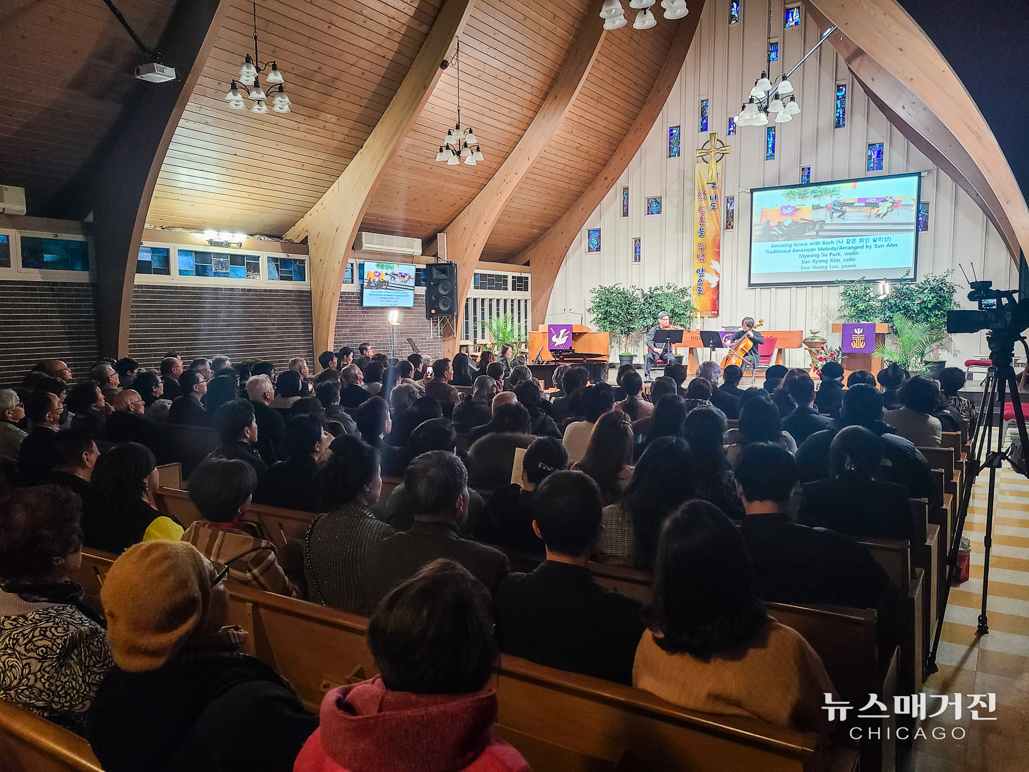 예배당 밖 로비에 좌석을 추가로 놓아야 정도로 성황을 이룬 음악회는 클래식 악기 중심의 연주로 장식됐다.