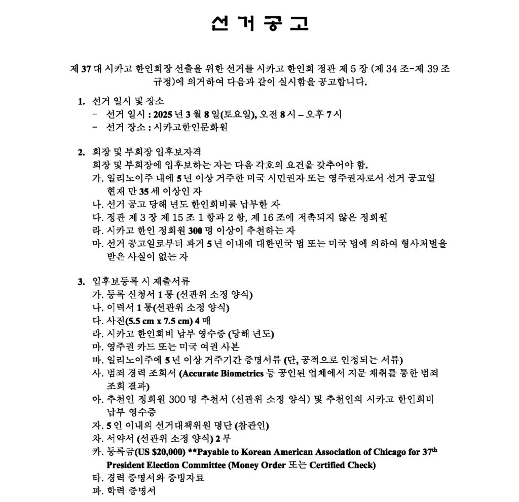 Home뉴스콘텐츠제37대 시카고한인회장선거 공고